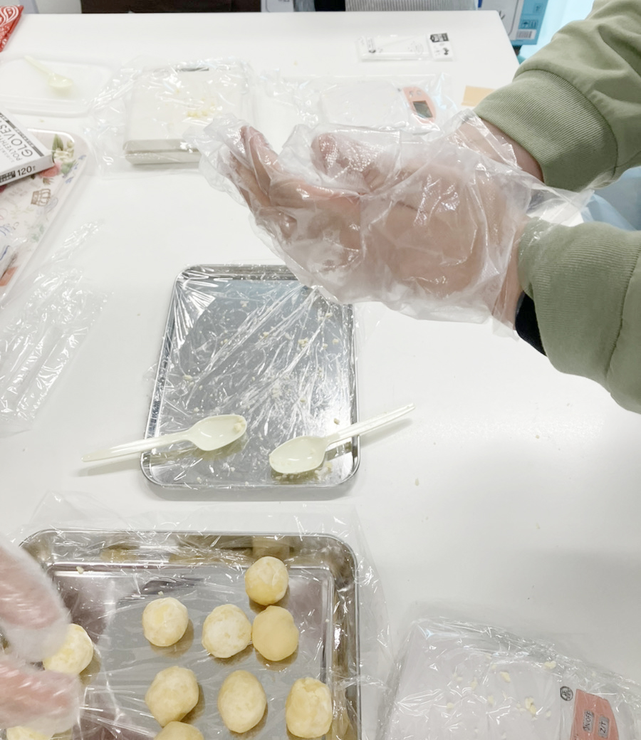ロリポップの中身になる生地を丸める作業はなかなか難しく、はじめは皆で苦戦していましたが…
