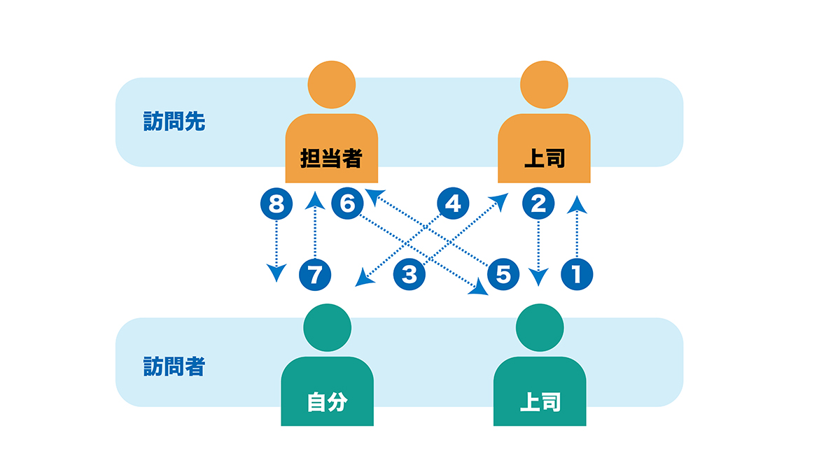 - 自分と相手側上司とで名刺交換